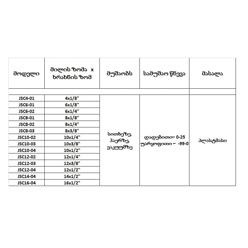 განკუთვნილია მილების გადასაბმელად და უზრუნველყოფს ჰერმეტულ შეერთებას პნევმატურ სისტემებში.