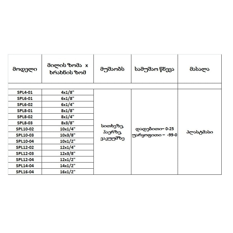 ფიტინგი SPL განკუთვნილია მილების გადასაბმელად და უზრუნველყოფს მჭიდრო, ჰერმეტულ შეერთებას პნევმატურ სისტემებში. ის განსაკუთრებით ეფექტურია მაშინ, როცა აუცილებელია ჰაერის გაჟონვისგან დაცული კავშირი.